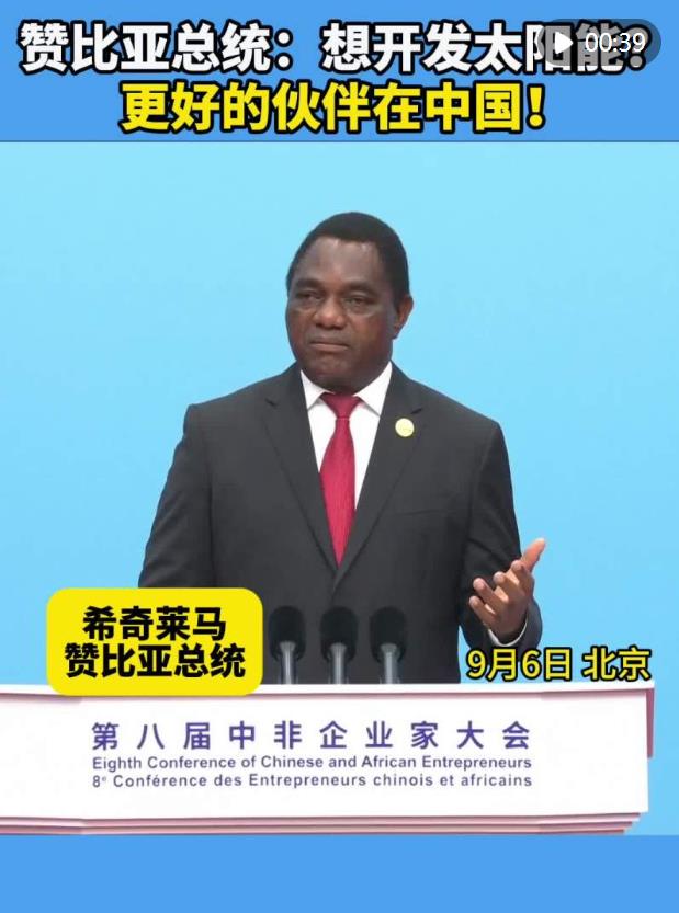 贊比亞總統(tǒng)希奇萊馬6日在第八屆中非企業(yè)家大會(huì)開(kāi)幕式上稱(chēng)贊中國(guó)技術(shù),呼吁非中企業(yè)加強(qiáng)技術(shù)合作。誰(shuí)是更好的能源領(lǐng)域合作伙伴?誰(shuí)能提供最好的太陽(yáng)能發(fā)電技術(shù)?他告訴非洲企業(yè)家:“那就是你們的中國(guó)同行!”