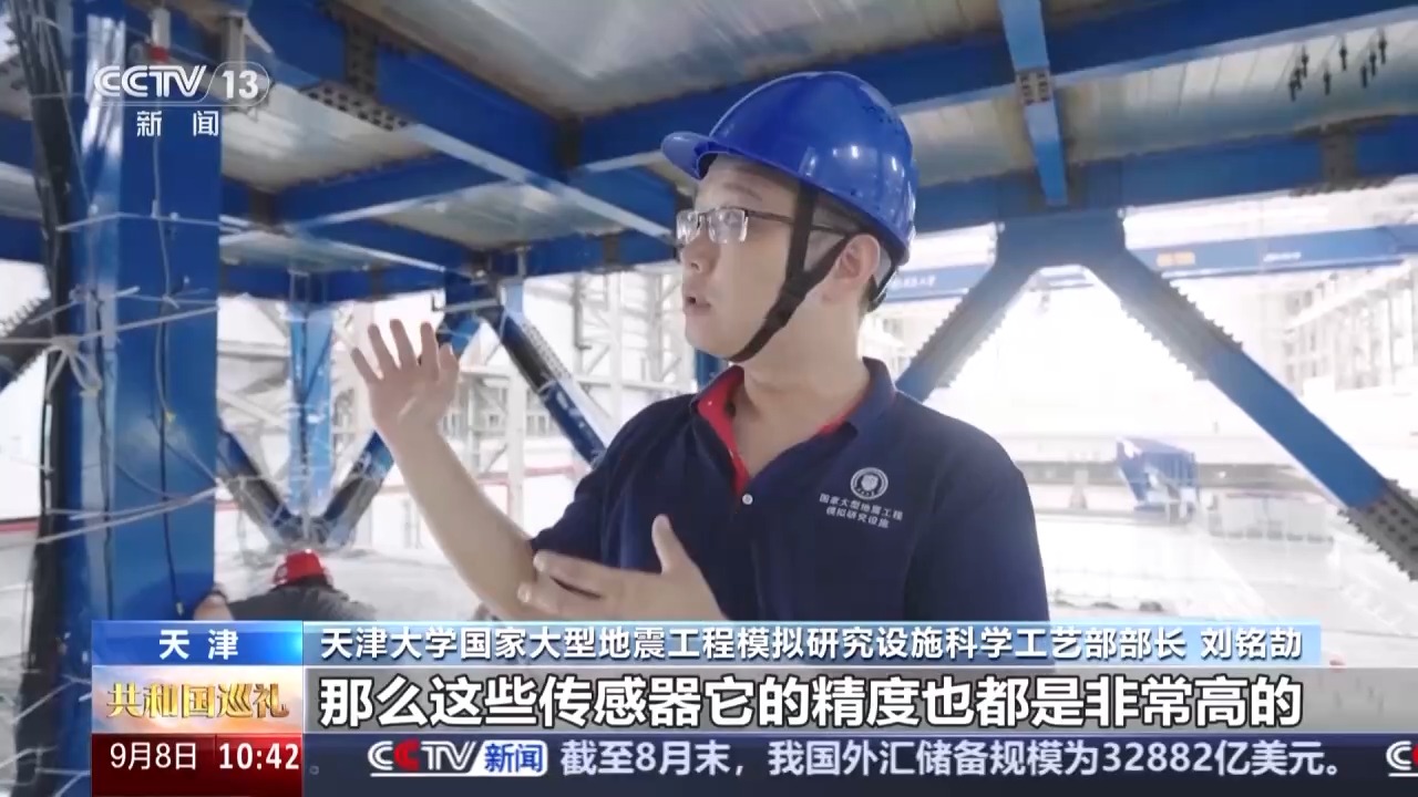 天津大學(xué)國家大型地震工程模擬研究設(shè)施科學(xué)工藝部部長 劉銘劼:我們安裝的傳感器加在一起有500多個,那么這些傳感器它的精度也都是非常高的,比方說我們測量結(jié)構(gòu)變形的傳感器,它的最小測量的值是0.1個毫米,比我們頭發(fā)絲直徑還要再小。