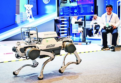網(wǎng)絡安全博覽會上的企業(yè)展示電網(wǎng)巡線機器狗。新華社記者 鄧華攝
