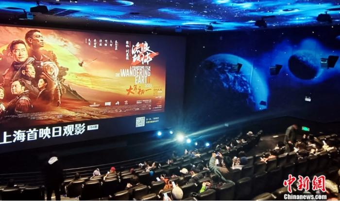 2023年1月22日,影迷在上海一電影院觀看國產(chǎn)科幻片《流浪地球2》。陳玉宇 攝