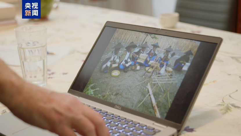 △托馬斯·海貝勒向記者展示在中國(guó)調(diào)研過(guò)程中拍攝到的照片