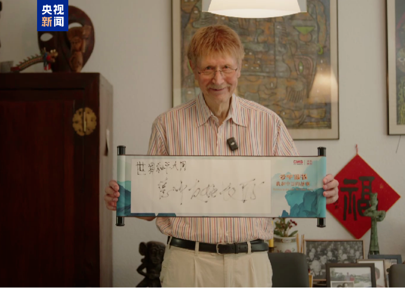 △托馬斯·海貝勒寫下:“世界和平大同,德中友好長(zhǎng)存?!?/p>