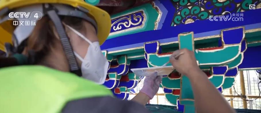 如今的北京中軸線構(gòu)建起了現(xiàn)代都市與歷史空間巧妙融合的城市景觀。北京中軸線上的前門五牌樓曾因常年風(fēng)吹日曬,導(dǎo)致油飾層開裂、失去華彩。2022年,古建油飾彩畫專家堅持古法彩繪,對前門五牌樓進行了翻新,令牌樓呈現(xiàn)出恢弘大氣的視覺效果。作為世界遺產(chǎn)的北京中軸線同時也是百姓日常工作生活的場景,這讓北京中軸線成為了“活遺產(chǎn)”。而在北京中軸線的最南端,重新復(fù)建的永定門如今已經(jīng)成為了百姓休閑和游客打卡的好去處。