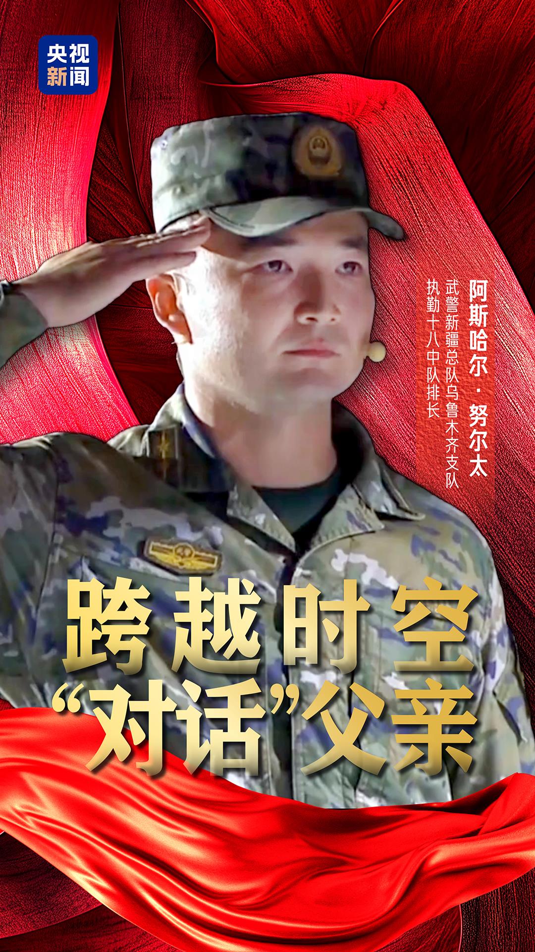 21日晚《把青春華章寫在祖國大地上》大思政課網(wǎng)絡(luò)主題活動現(xiàn)場,投筆從戎的南開學子阿斯哈爾 · 努爾太,通過AI技術(shù)穿越時空與父親對話。阿斯哈爾獻給父親的一個軍禮,令無數(shù)人動容。