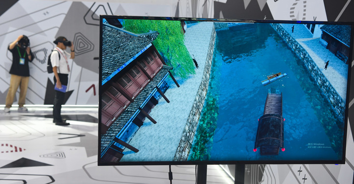 9月21日,觀眾在第十四屆中國(guó)國(guó)際數(shù)字出版博覽會(huì)上體驗(yàn)大運(yùn)河VR沉浸式研學(xué)空間。 新華社記者 楊冠宇 攝
