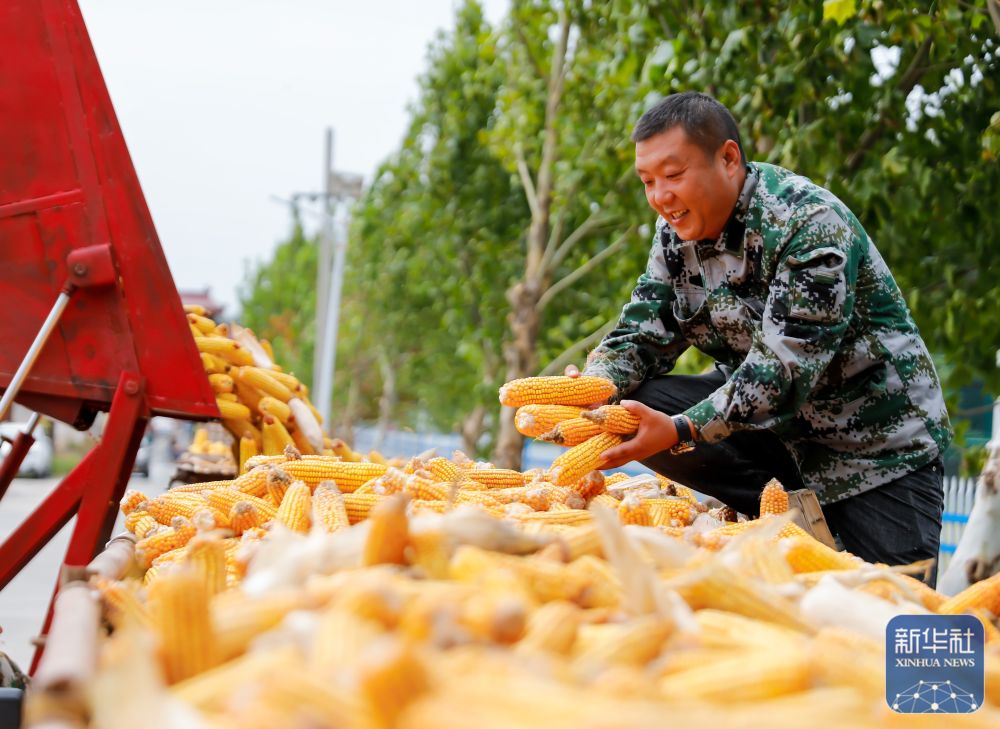 9月17日,山東省臨沂市平邑縣卞橋鎮(zhèn)農(nóng)民將收獲的玉米裝車。