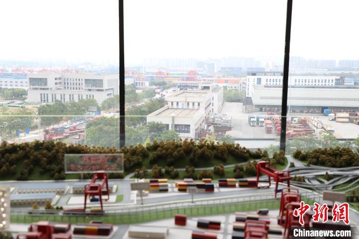 窗內(nèi),一個個精心搭建的微縮模型展現(xiàn)著西部陸海新通道的發(fā)展脈絡(luò);窗外,彩色集裝箱整齊排列,載貨卡車往來穿梭,一派繁忙景象。這一列列集裝箱,滿載著重慶這座內(nèi)陸城市通江達(dá)海的發(fā)展故事。