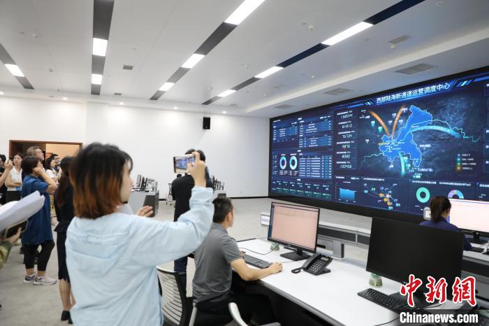 圖為采訪團(tuán)成員走訪西部陸海新通道運營調(diào)度中心。梁欽卿 攝