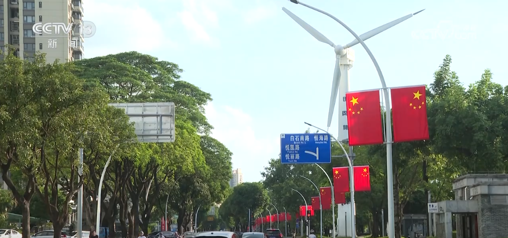 在廣東深圳,公園、廣場(chǎng)、街道上,處處可以看到五星紅旗迎風(fēng)飄揚(yáng)。紅旗與藍(lán)天、綠樹、高樓交相輝映,為城市增添了濃濃的節(jié)日氛圍。