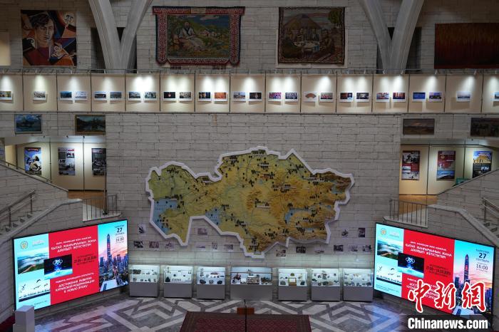 當(dāng)?shù)貢r間9月27日,哈薩克斯坦阿拉木圖,由中國駐阿拉木圖總領(lǐng)館和哈薩克斯坦中央國家博物館聯(lián)合舉辦的“發(fā)展、創(chuàng)新與開放:新時代中國式現(xiàn)代化發(fā)展成就”圖片展在哈薩克斯坦中央國家博物館開幕。 中新社記者 單璐 攝