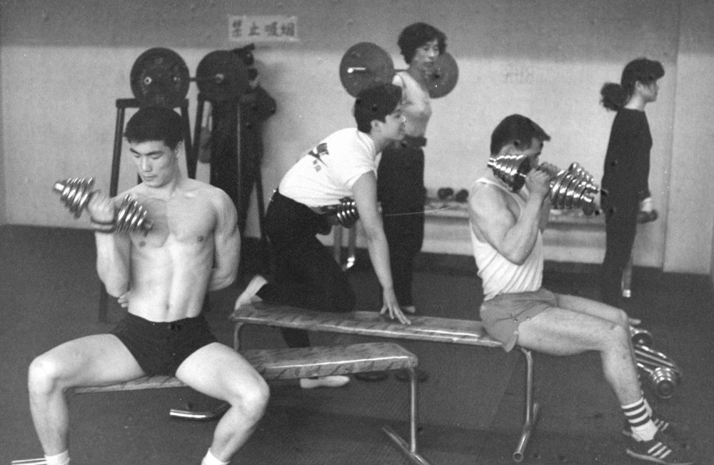 1990年北京市民利用業(yè)余時間進行健美訓(xùn)練。新華社發(fā)
