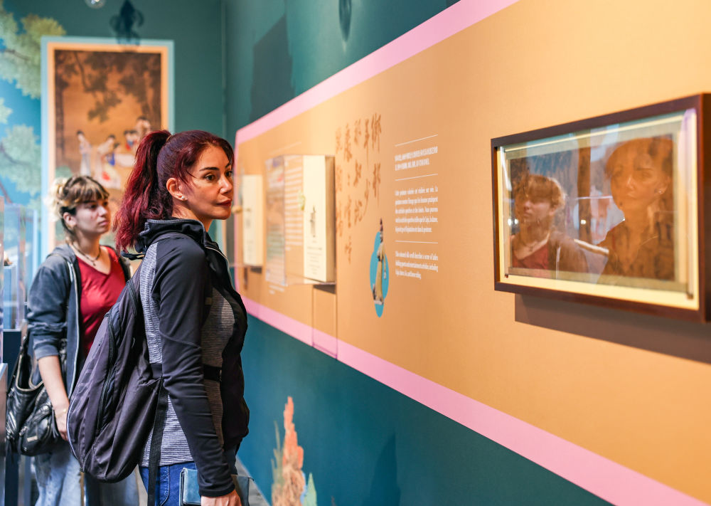 7月23日,觀眾在開幕式上參觀。當日,“龍馬風度 體育精神——中華體育文化展”在法國巴黎巴士底設(shè)計中心開幕。新華社記者 張帆 攝
