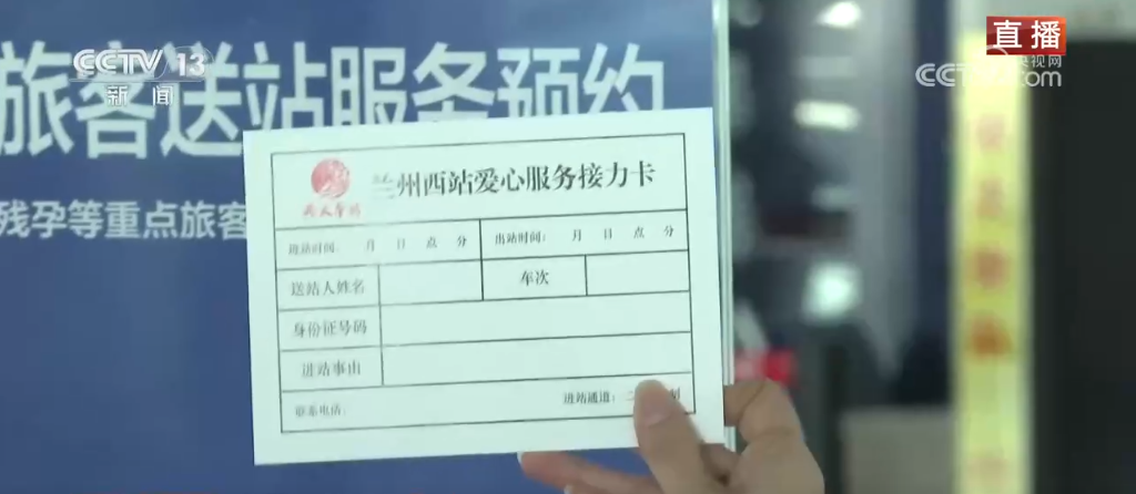 記者手里拿的“愛心服務(wù)接力卡”是今年車站升級的服務(wù)。針對沒有車票不能接送站的情況,可以在進站口說明情況之后領(lǐng)取“接力卡”作為通行的憑據(jù),在卡片上寫清楚個人信息、聯(lián)系方式和進站事由之后,直接進站接送老幼病殘孕等重點旅客,出站時再把這張接力卡交回工作人員手中,完成閉環(huán)服務(wù)。