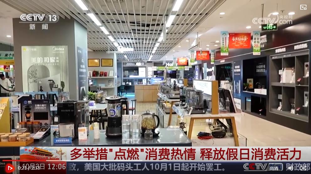 央視網(wǎng)消息:國慶假期開啟,消費(fèi)市場也迎來了旺季。各地紛紛加大力度滿足節(jié)日市場供給、保障好節(jié)日需求。同時(shí),創(chuàng)新供給方式、推出新的消費(fèi)場景、加大文旅產(chǎn)品供應(yīng),加力推進(jìn)消費(fèi)品以舊換新,進(jìn)一步激活市場。