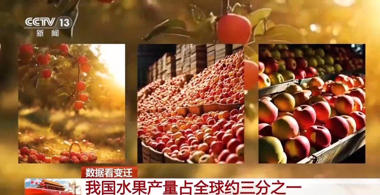 數(shù)據(jù)看變遷,關(guān)注老百姓餐桌上的尋常物——水果。75年間,水果從老百姓餐桌上的稀客變成日常飲食中尋常的“小伙伴”,我國已成為全球最大的水果生產(chǎn)國和消費國,水果產(chǎn)量占到了全球的約三分之一。