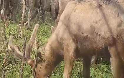 湖北石首麋鹿國家級自然保護區(qū)內(nèi),麋鹿們常常結(jié)成大群活動,而每每一見到美食,它們就抵不住誘惑,立馬沉浸式地埋頭享用起來。