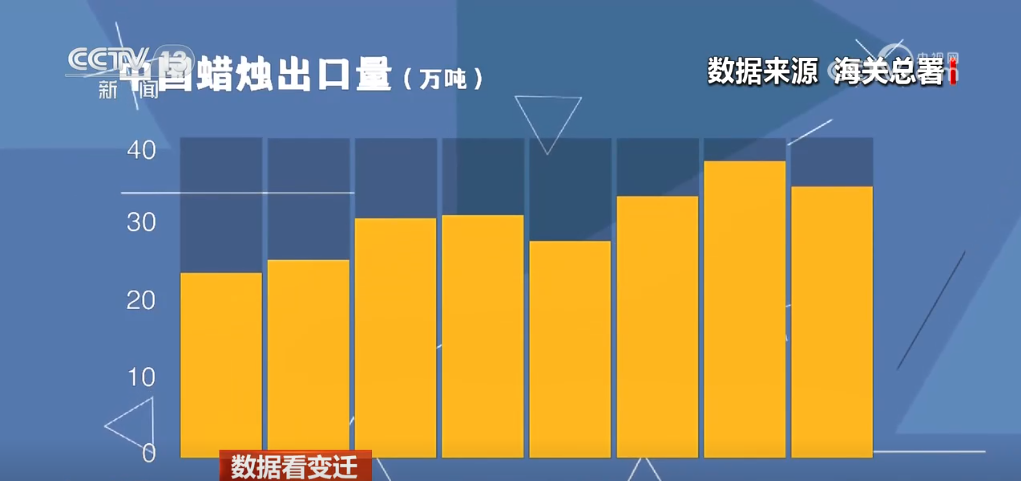 隨著電力普及,蠟燭在國(guó)內(nèi)逐漸淡出人們的視線,但卻在海外大放異彩。近10年來(lái),我國(guó)蠟燭年度出口量邁過(guò)30萬(wàn)噸關(guān)口,和中國(guó)綠茶一年的出口量相當(dāng)。中國(guó)蠟燭“漂洋過(guò)?!比ネ?60多個(gè)國(guó)家和地區(qū),穩(wěn)坐全球蠟燭貿(mào)易“頭把交椅”。國(guó)內(nèi)蠟燭相關(guān)企業(yè)增加到約1.02萬(wàn)家,近50%的企業(yè)成立于10年之內(nèi),傳統(tǒng)的蠟燭產(chǎn)品向高附加值邁進(jìn)。