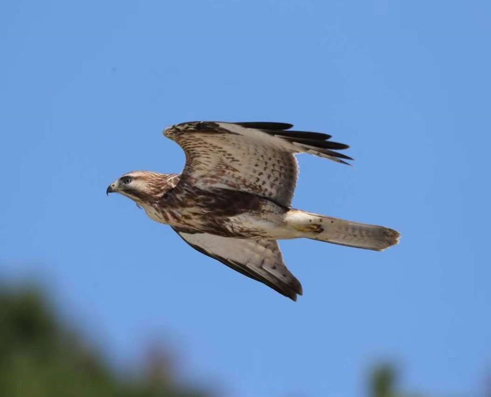 9月23日,一只普通鵟飛越老鐵山。(遼寧蛇島老鐵山國(guó)家級(jí)自然保護(hù)區(qū)供圖)