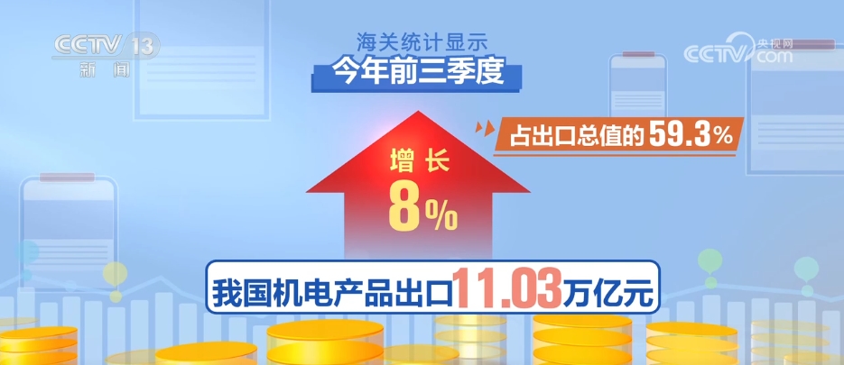 海關(guān)統(tǒng)計(jì)顯示,今年前三季度,我國(guó)出口產(chǎn)品結(jié)構(gòu)優(yōu)化,高端裝備出口增長(zhǎng)超4成。機(jī)電產(chǎn)品出口11.03萬億元,增長(zhǎng)8%,占出口總值的59.3%。其中,高端裝備出口增長(zhǎng)43.4%,集成電路、汽車、家用電器出口分別增長(zhǎng)22%、22.5%、15.5%。此外,傳統(tǒng)勞動(dòng)密集型產(chǎn)品出口3.13萬億元,增長(zhǎng)2.8%。