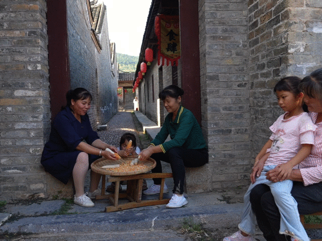 村民在廣西來(lái)賓市象州羅秀鎮(zhèn)納祿村剝玉米(10月10日攝)。