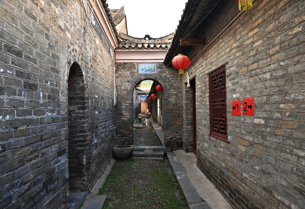 一位村民行走在廣西來(lái)賓市象州羅秀鎮(zhèn)納祿村的古巷中(10月10日攝)。
