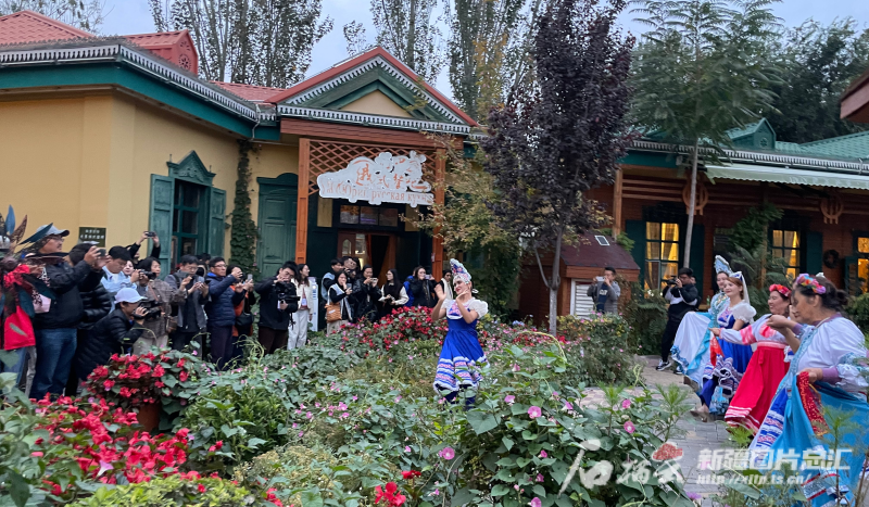 六星街位于伊寧市西北側(cè),3條道路在中心點(diǎn)交錯并輻射出6條主干道,形成了一個獨(dú)具特色的六邊形街區(qū),被稱為“六星街”。外媒代表走進(jìn)俄羅斯風(fēng)情園,一群身著傳統(tǒng)服飾的人正歡快地跳著舞,每一個動作都傳遞出快樂因子,感染大家一同舞起來。