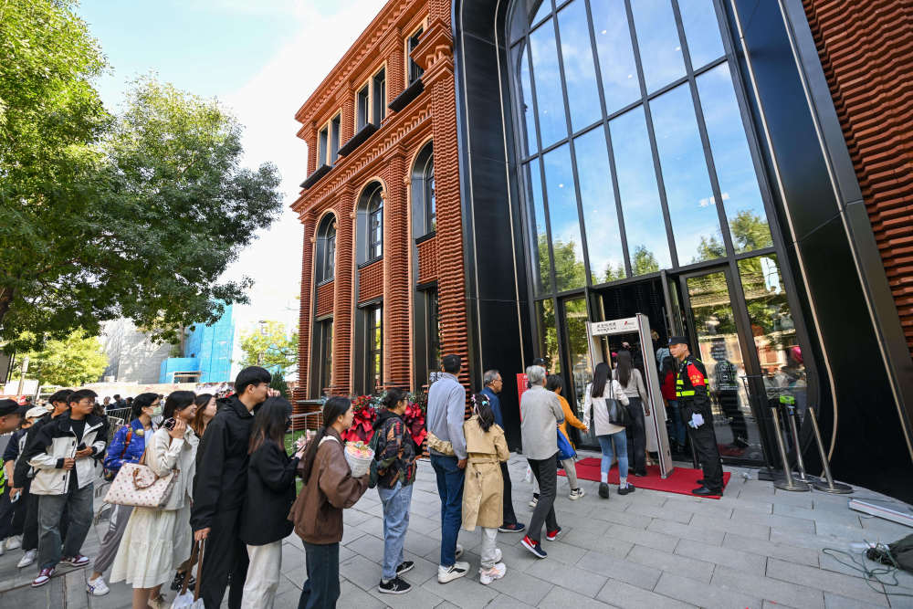 今年國慶假期,讀者排隊等待進入位于天津意式風(fēng)情區(qū)的鐘書閣書店。新華社記者 孫凡越 攝
