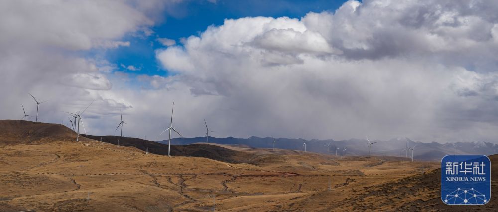 10月17日拍攝的位于西藏日喀則市薩迦縣的風(fēng)力發(fā)電機組。