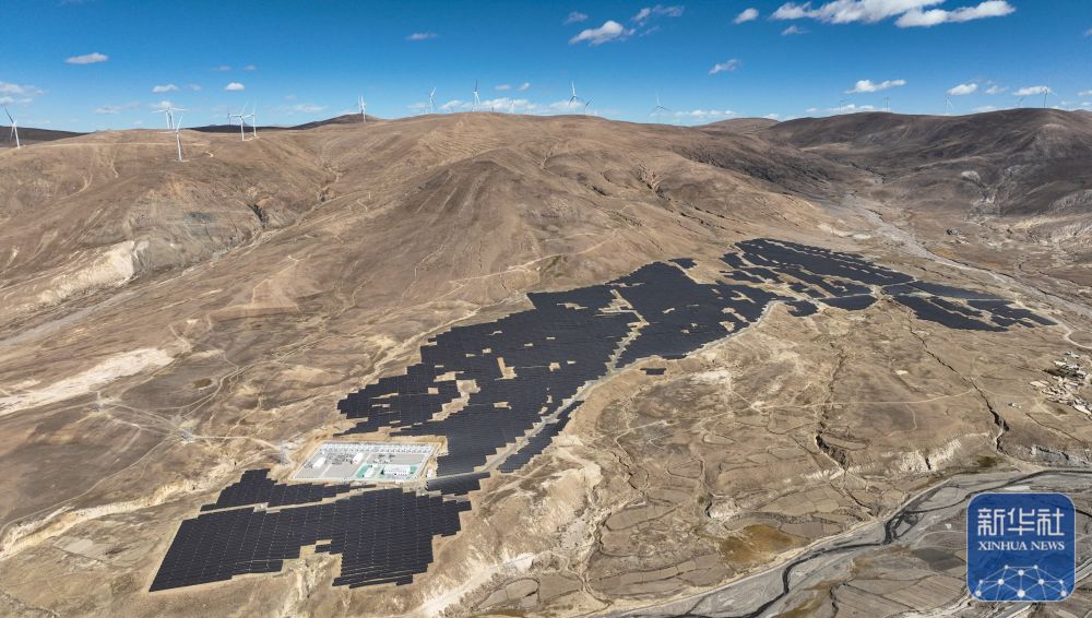 10月17日拍攝的位于西藏日喀則市薩迦縣的中核薩迦300兆瓦風(fēng)光儲一體化電站(無人機照片)。