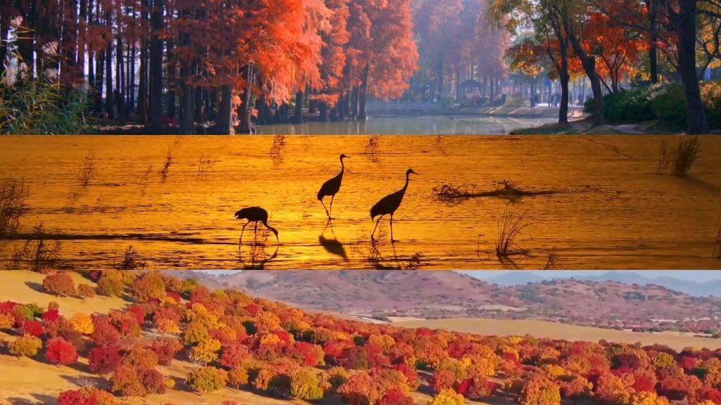 江蘇黿頭渚秋意漸濃,與太湖相映成趣;山東黃河入???,成群鳥兒在濕地覓食、嬉戲;山西太行山色彩繽紛,秋色宜人。