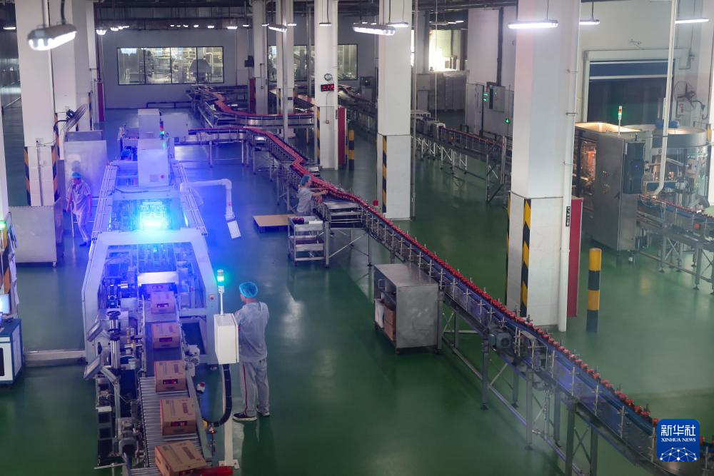 用于制作辣椒醬的黃豆在生產(chǎn)線上被精選出來(8月22日攝)。新華社記者 劉續(xù) 攝