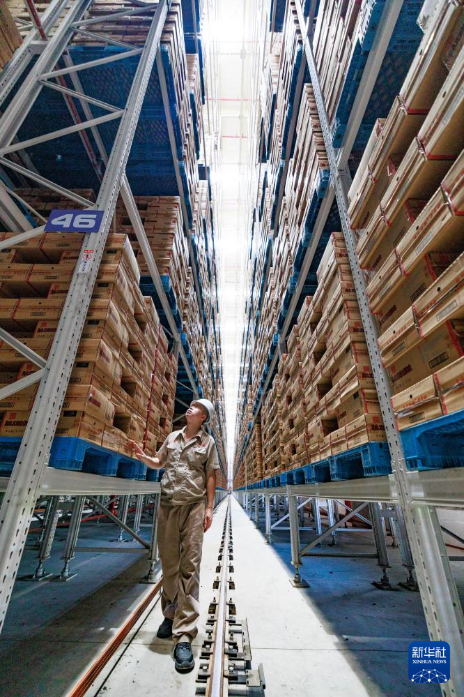 工作人員在老干媽倉庫內(nèi)查看存儲(chǔ)的貨物(8月20日攝)。新華社記者 劉續(xù) 攝