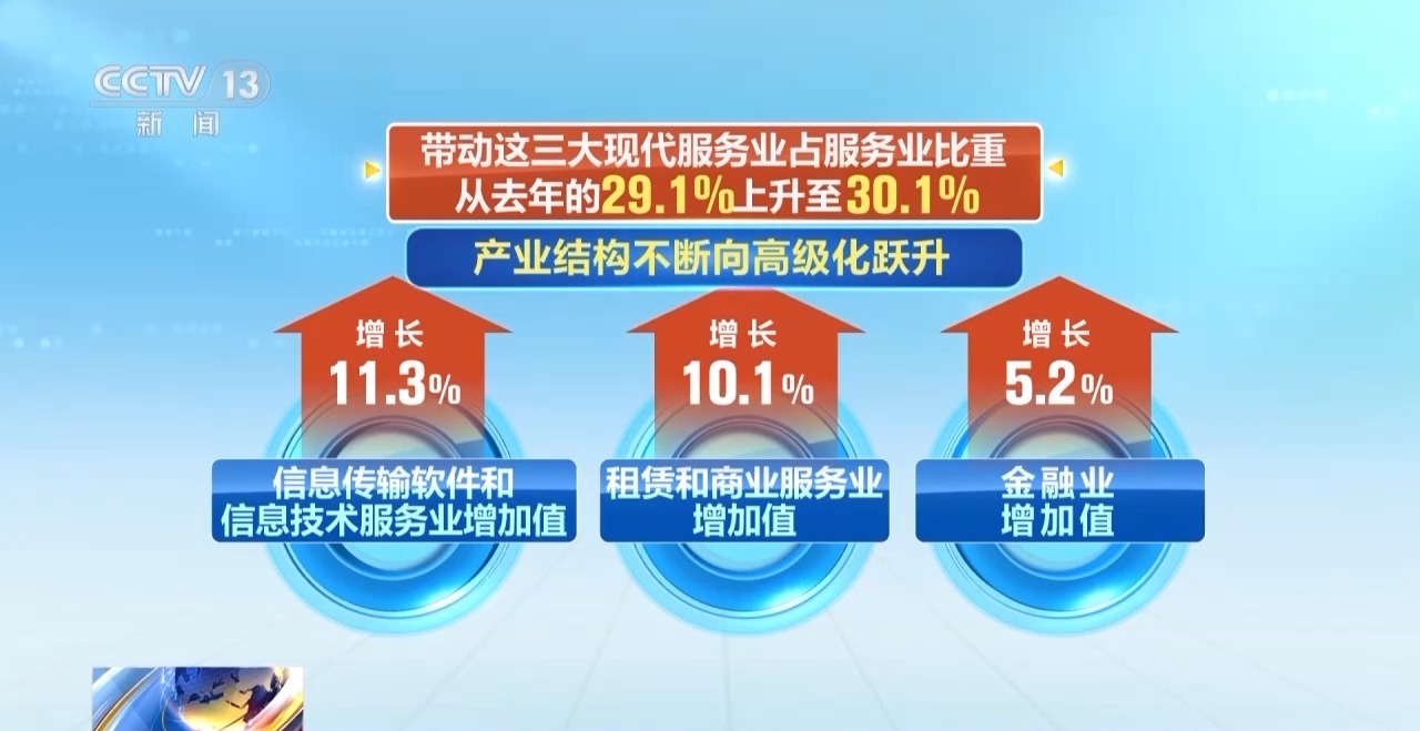 產(chǎn)業(yè)結(jié)構(gòu)持續(xù)升級。前三季度,裝備制造業(yè)增加值占全部規(guī)模以上工業(yè)的比重達(dá)33.8%,已連續(xù)19個(gè)月保持在30%以上。信息傳輸軟件和信息技術(shù)服務(wù)業(yè)、租賃和商業(yè)服務(wù)業(yè)、金融業(yè)增加值分別以11.3%、10.1%和5.2%的速度快速增長,帶動(dòng)這三大現(xiàn)代服務(wù)業(yè)占服務(wù)業(yè)比重從去年的29.1%上升至30.1%,產(chǎn)業(yè)結(jié)構(gòu)不斷向高級化躍升。