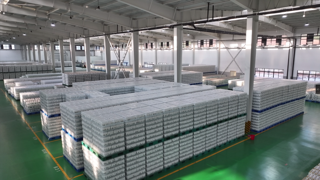 2024年10月30日拍攝的丹江口武當(dāng)山水飲料有限公司倉(cāng)庫(kù)。(王世霖 攝)