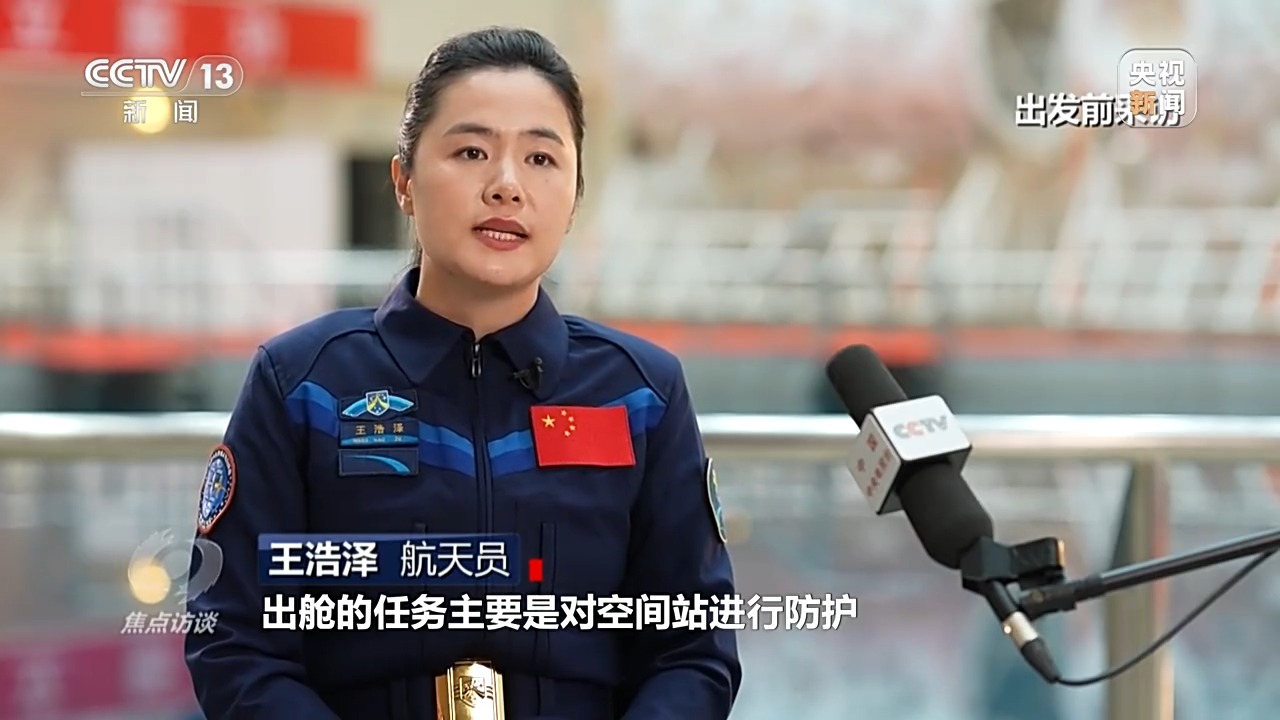 航天員 王浩澤:出艙的任務(wù)主要是對空間站進行防護。因為在空間里面運行,空間站它有可能會受到微流星、空間碎片干擾,甚至是沖擊,所以我們要對艙外的一些重要管路、設(shè)備進行防護。