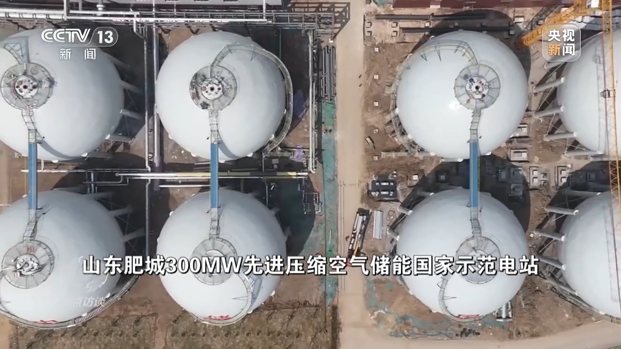 中國(guó)科學(xué)院工程熱物理研究所儲(chǔ)能研發(fā)中心副主任 李文:利用多余的電來(lái)驅(qū)動(dòng)電動(dòng)機(jī),帶動(dòng)壓縮機(jī)把空氣壓縮到高壓狀態(tài),最后存儲(chǔ)到儲(chǔ)氣裝置中,在有需要的時(shí)候,我們利用所存儲(chǔ)的高壓空氣來(lái)驅(qū)動(dòng)膨脹機(jī),帶動(dòng)發(fā)電機(jī)進(jìn)行做功發(fā)電。