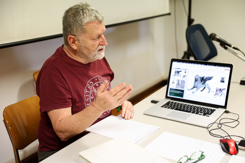 11月5日,意大利帕多瓦大學(xué)文化遺產(chǎn)學(xué)院教授馬西莫·維達萊介紹“威尼斯之獅”研究相關(guān)情況。新華社記者李京攝