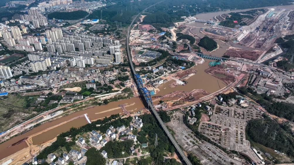 這是廣西平陸運(yùn)河青年樞紐與市區(qū)銜接處的建設(shè)工地(2024年10月11日攝,無人機(jī)照片)。新華社記者 張愛林 攝