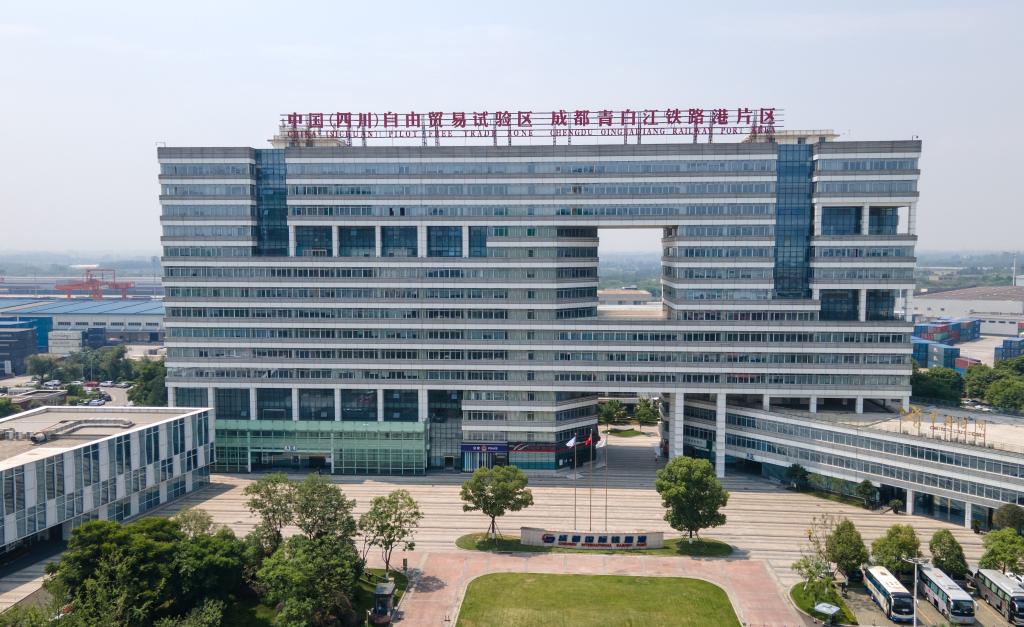 中國(四川)自由貿(mào)易試驗(yàn)區(qū)成都青白江鐵路港片區(qū)(2024年6月13日攝,無人機(jī)照片)。新華社記者 唐文豪 攝