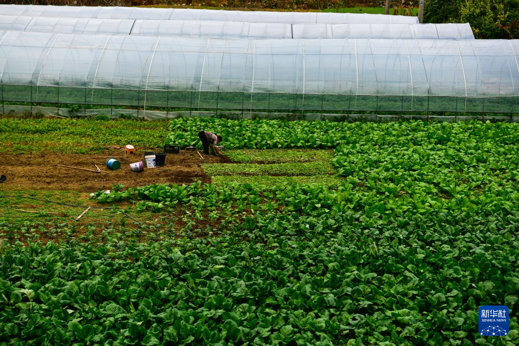 貴陽市烏當區(qū)下壩鎮(zhèn)下壩村的村民在地里摘菜,準備第二天進城售賣(11月6日攝)。