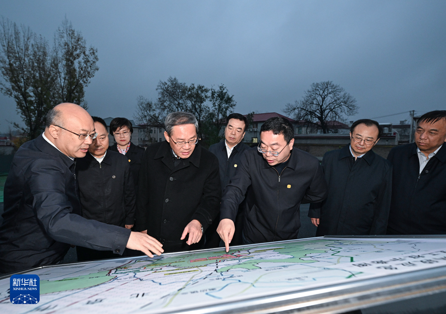 11月13日,中共中央政治局常委、國(guó)務(wù)院總理李強(qiáng)在河北調(diào)研。這是李強(qiáng)在涿州市小清河分洪區(qū)南圍堤建設(shè)工程現(xiàn)場(chǎng),察看項(xiàng)目最新進(jìn)展,聽取河北省災(zāi)后重建重大水利工程等情況匯報(bào),與設(shè)計(jì)施工監(jiān)理人員交流。新華社記者 饒愛民 攝