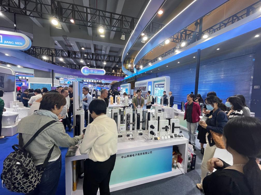 這次,不少產(chǎn)業(yè)集群、工業(yè)園區(qū)攜供應(yīng)鏈上下游企業(yè)集體參展。廣東省中山市小欖鎮(zhèn)智能鎖具產(chǎn)業(yè)集群代表企業(yè),正通過(guò)短視頻和直播向海外客戶推介最新的鎖具產(chǎn)品?!霸谡囊龑?dǎo)下,企業(yè)出海的步伐逐步加快,中山鎖具已推向全國(guó)、走向世界?!敝猩絻伤腚娮由虅?wù)有限公司業(yè)務(wù)經(jīng)理?xiàng)钣襁B說(shuō)。