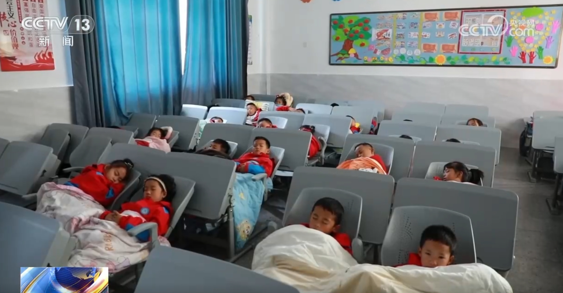 這里的課桌椅也與眾不同,可以根據(jù)孩子的身高調(diào)節(jié)高度,椅子向后放倒就變成一張迷你小床。每天午休時(shí)間,孩子們就可以直接躺臥在椅子上睡午覺(jué)。