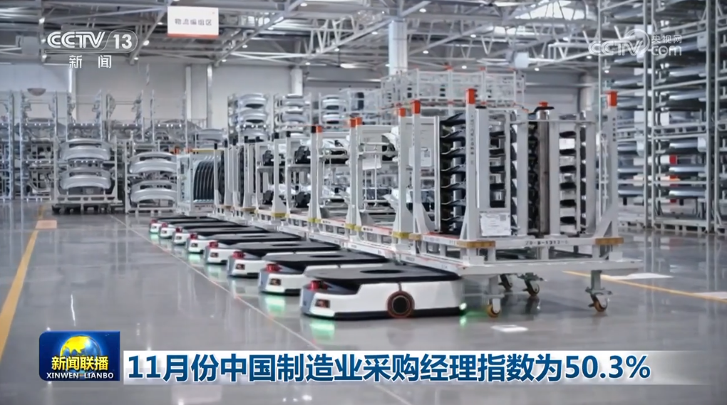 11月份中國制造業(yè)采購經(jīng)理指數(shù)為50.3%,比上月上升0.2個百分點。
