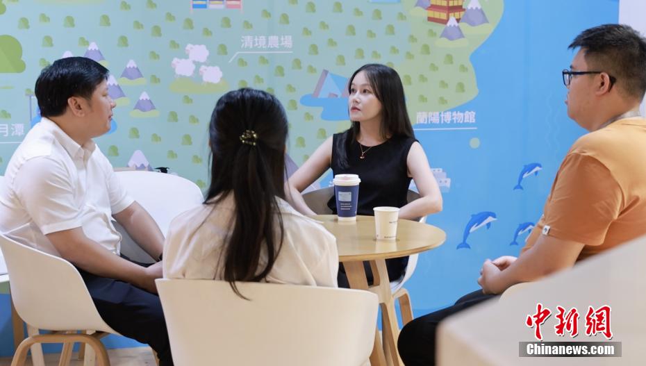 在臺灣大學生到廣州實習活動的開營儀式上當主持人,以自身經(jīng)歷分享給臺灣各大高校的學弟學妹們,吳宥璇既是主持人,也是過來人。臺下的年輕學子看著這位學姐,身上有許多靚麗的標簽,“美國名校”“創(chuàng)業(yè)達人”“年輕有為”,每一個都令人向往,但故事的開頭,大家都不知道,這位只身闖大陸的學姐,卻被家人禁止來到大陸。圖為廣東廣州,吳宥璇在廣州市白云區(qū)匯龍海峽兩岸青年創(chuàng)業(yè)基地里和同事交流。
