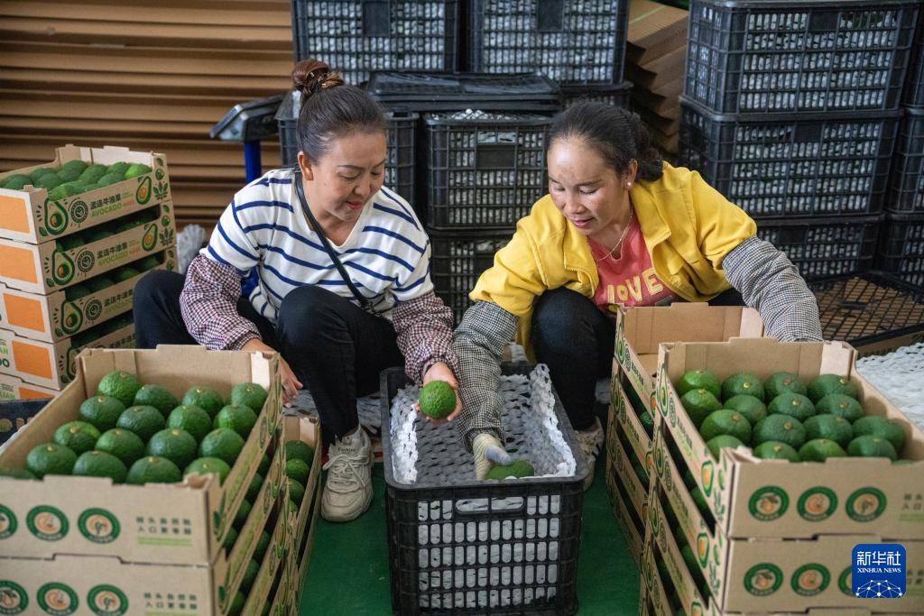 由企業(yè)在當?shù)剞r(nóng)民中培訓的產(chǎn)業(yè)技術(shù)人員李美瓊在一處牛油果種植基地檢查待采的牛油果(10月29日攝)。新華社記者 陳欣波 攝