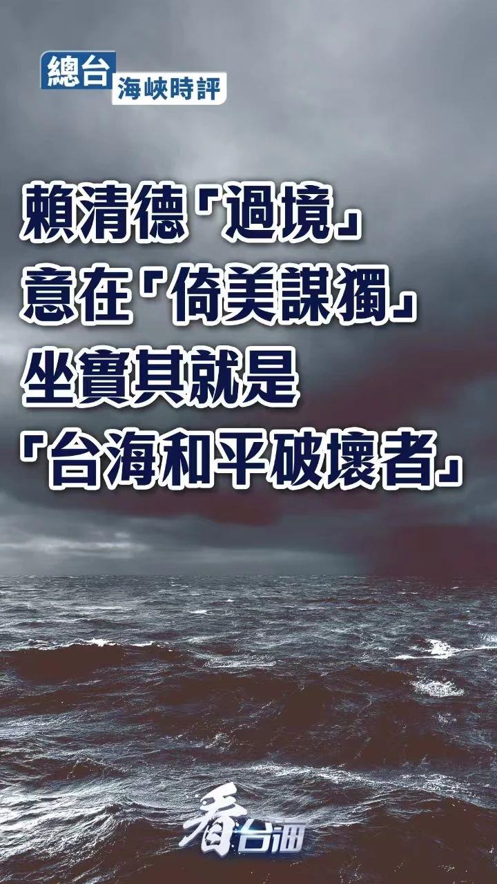 賴清德深知“過境”美國必然遭到大陸方面堅決反對、有力反制,只會加劇臺海緊張局勢。因此,在其行前賴當局就勾連外部勢力在國際上造勢,妄圖以所謂“慣例說”將此行正當化,掩蓋其挑釁在先、破壞和平的惡劣本質(zhì)。臺灣是中國的臺灣,臺灣地區(qū)領導人以任何名義任何理由“過境”美國,都是對一個中國原則的嚴重挑戰(zhàn)。錯誤的所謂“慣例”不僅不是正當化的理由,還是錯上加錯、惡上加惡,一步步把臺灣推向更加危險的境地。