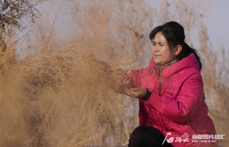 11月29日,在且末縣河東治沙基地,帕提古麗·亞森在收集梭梭種子。蘇鑫 攝