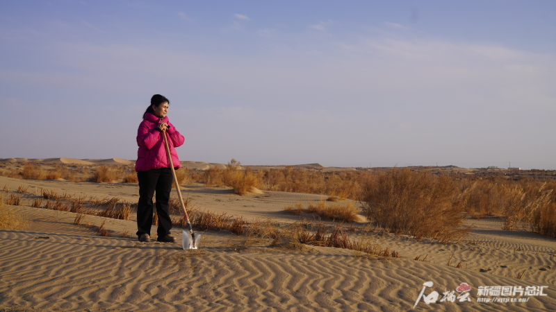 2005年,23歲的帕提古麗來到且末縣防風治沙工作站,成為且末縣首批防沙治沙護林員。20年來,她不畏艱辛,挖坑栽樹,割蘆葦建草方格,把最美好的年華都奉獻給了這片黃沙之地。曾經青春洋溢的少女,如今已步入中年,她用自己的青春換來沙漠中那一片片生機勃勃的綠色。