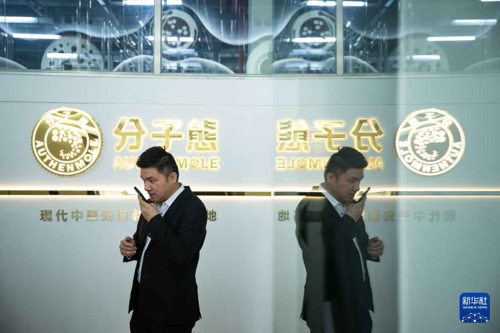 12月11日,黃滋才在位于橫琴的分子態(tài)(珠海橫琴)中醫(yī)藥健康產(chǎn)業(yè)發(fā)展有限公司用手機(jī)處理事務(wù)。